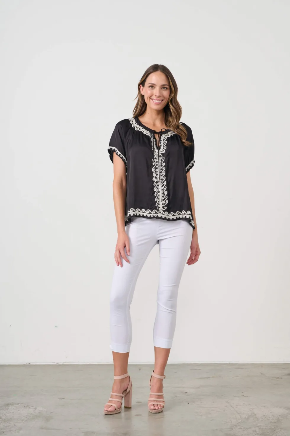 Applique Bead & Neck Tie Blouse CZ1080 by Caju at The Wardrobe 100% Viscose Hand wash in warm water Do no iron Drycleanable