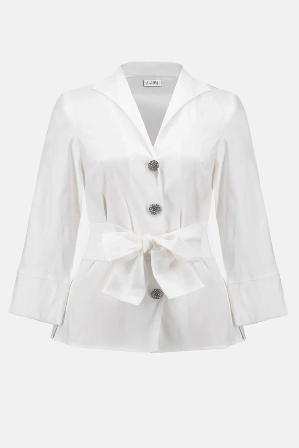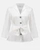 Stretch Taffeta Fitted Blouse – White This jacket is crafted to captivate, combining timeless elegance with modern sophistication. Made from stretch taffeta, it boasts a subtle sheen and a sleek, polished finish. The fitted silhouette accentuates your figure, while the classic lapel collar adds a touch of refinement.