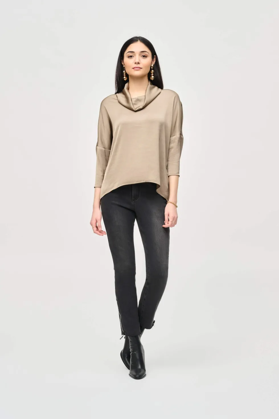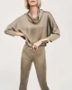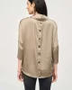 This is a sale item and is only eligible to return for a store credit or exchange. Crafted from lustrous satin, this top exudes a rich appeal that speaks volumes of your refined taste. The unique high-low cut and the detail of the faux placket add a contemporary twist, while the cowl neck and buttoned long sleeves en