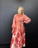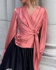 Innes Blouse – Semi Rich Peach 2090KM by Karmamia at The Wardrobe. Femininity and style embody the Ines Blouse. The neckline drapes softly around the bodice, and a satin ribbon gathers at the waist to highlight your curves. The Ines Blouse comes with long sleeves finished with a wide cuff round out the blouse. The col