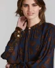 The Baroque is a stunning top in a modern, ornate paisley print with contrasting details. It features a collar with a stylish front opening,textured metal shank buttons, long drapey sleeves, and neat cuffs. 100% Viscose Hand wash separately in cool water. Cool iron on reverse to reshape using minimum steam. Dry clean