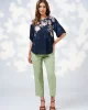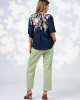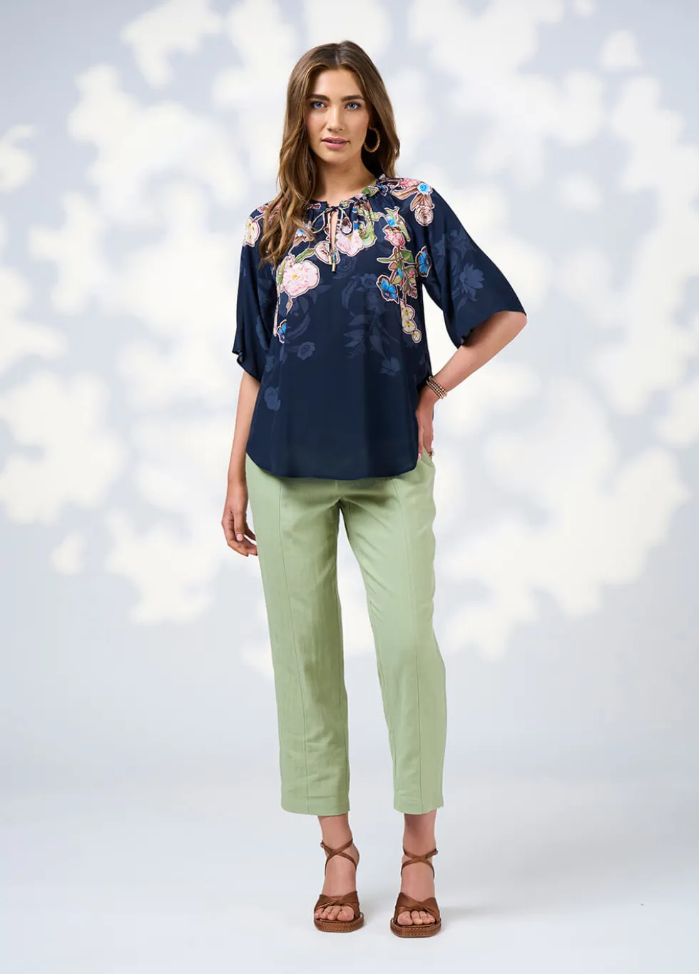 Maeve Blouse – Indigo LS3025 by Loobie's Story at The Wardrobe 100% ViscoseInstructions:Cool hand wash using mild detergent, do not machine wash. Do not rub/soak/wring/bleach. Do not tumble dry. Dry away from direct sunlight. Warm iron to resume to size and shape. Drycleanable. Max shrinkage 3-4%