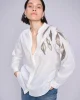 Gemran Flick Blouse 169850 by Mos Mosh at The Wardrobe. Stand out with this exclusively hand-painted blouse, crafted in a relaxed fit featuring an open neckline and concealed button closure. Each piece is uniquely hand-painted, ensuring every blouse is one-of-a-kind. Pair it with light-coloured tailored pants for a sop