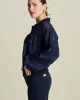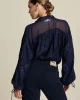 Jacquard Midnight Blue Blouse Pom8015 by Pom Amsterdam at The Wardrobe This blue blouse with wide sleeves is perfect for autumn! The blouse has a wavy effect in the fabric and bows at the sleeves. This item is made of 100% viscose and is a more sustainable item. • Dark blue blouse• Jacquard fabric