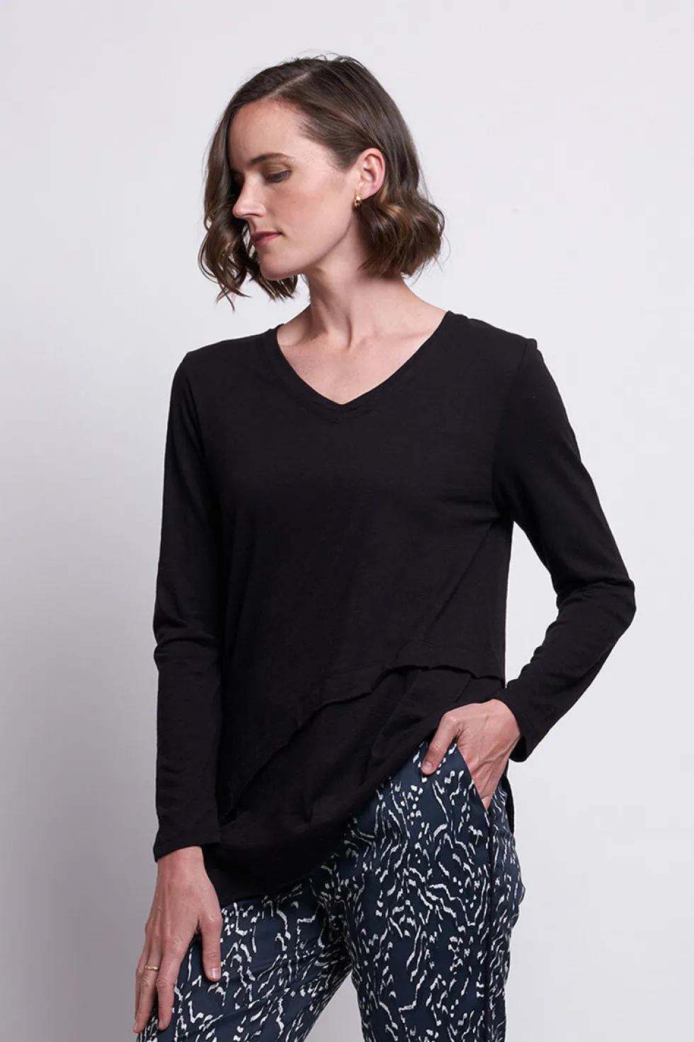 Pipe Dream Trapeze Pant – 7595 by Foil available at The Wardrobe 69% Cotton 27% Nylon 4% Elastane Machine Wash with similar colours . Bluey Grey colour