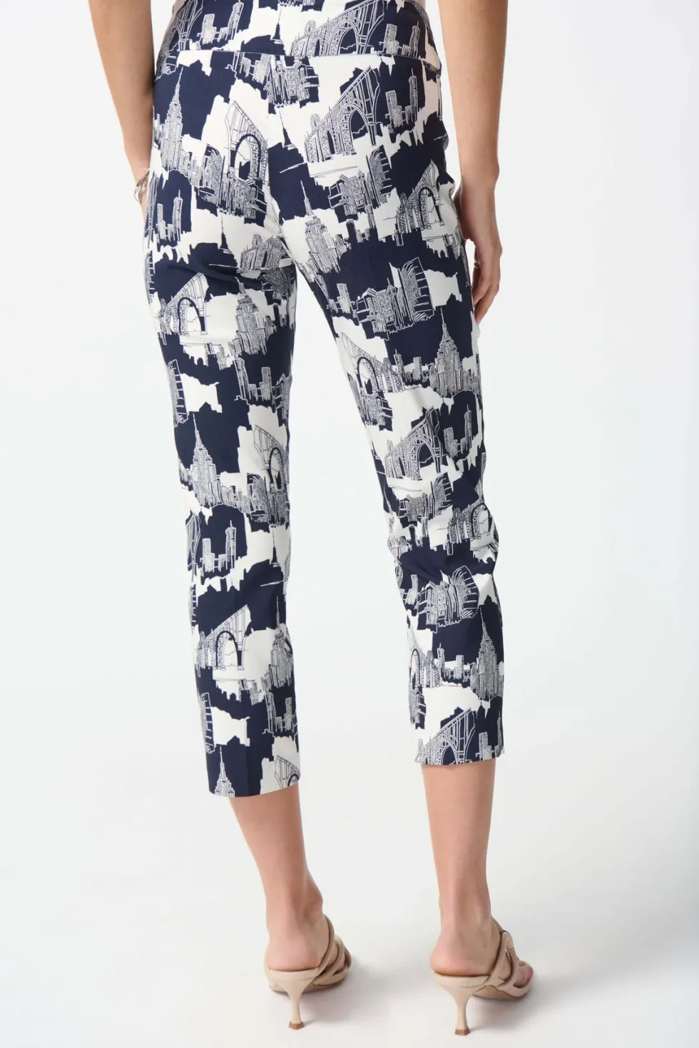 Seascape Millennium Scenery Pant 242212 by Joseph Ribkoff at The Wardrobe This is a sale item and is only eligible to return for a store credit or exchange. These millennium cropped pants are designed to embrace your form and complement your stride. This statement piece reveals a mesmerizing scenery print that marries