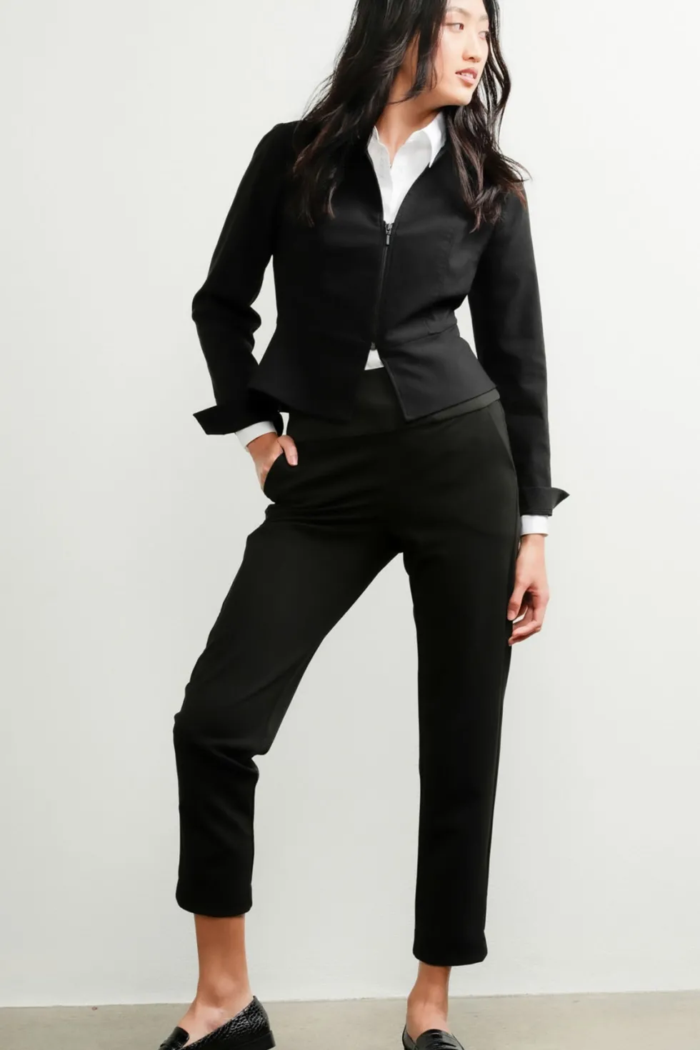 The Tapered Leg Pant is an indispensable staple that forms the foundation of any well-edited capsule wardrobe. Crafted from a lightweight fabrication, this pant is an easy pull on style with a tapered leg design that can effortlessly traverse from work to weekend. Pair with blouses and tops in or out, a blazer for work