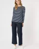 Striped Badge Detail Tee 42270 by Gordon Smith at The Wardrobe. Add some sparkle and flair to your wardrobe with the Badge Detail top, featuring stunning patch details embellished with sequins and beading. The stripes provide a classic touch, while the intricately designed patches offer a playful and glamorous finish.