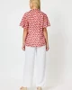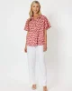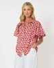 Cockatoo Shirt by Hammock & Vine 43296 at The Wardrobe 100% Cotton Playful pink & red cockatoo print Soft collar with button through placket Short fluted sleeves Sits below the hips on most Model wears size 8/XS and stands 173cm tall.