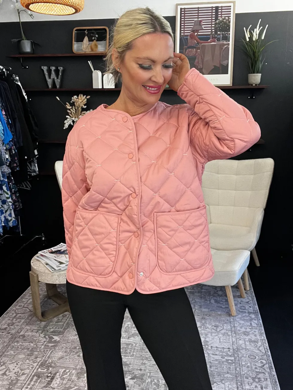 Tic Tac Toe Jacket – Chintz Pink 7757 by FOIL available at The Wardrobe Main 100% Polyester Filll 100% Polyester Lining 100% Polyester