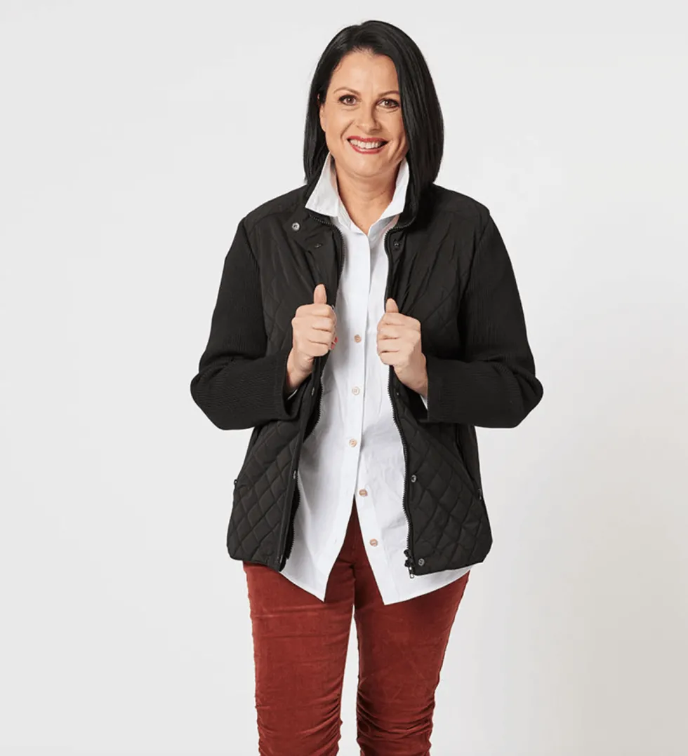 45332 – Brighton Puffer Jacket – Black at The WardrobeFeatures: M: 90%Polyester/10%Nylon C: 100%Nylon Quilted design Ribbed side panels for comfort Ribbed knit sleeves Concealed front placket Zip & button up fasteners Side pockets with zippers Lined Fit Guide: Fitted Hip length Long sleeve