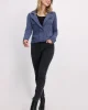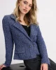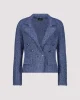 Lapel Collar Jacket – Indigo 408488 by Monari at The Wardrobe. 77% cotton; 14% polyester; 7% viscose; 2% metallized polyester Gentle machine wash/Wool detergent/Wash inside out This tweed blazer in high quality cotton and glittering yarn features decorative buttons, is slightly fitted and has cool frayed edges.