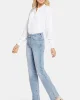 90% Cotton, 8% Elastomultiester, 2% Lycra® Elastane Made with Lift Tuck® Technology to flatten in the front and flatter curves in the back. Zip fly and button closure; five-pocket styling Machine wash cold and line dry. The easy, figure-elongating construction of the NYDJ Marilyn Straight Jeans pairs well with everyt