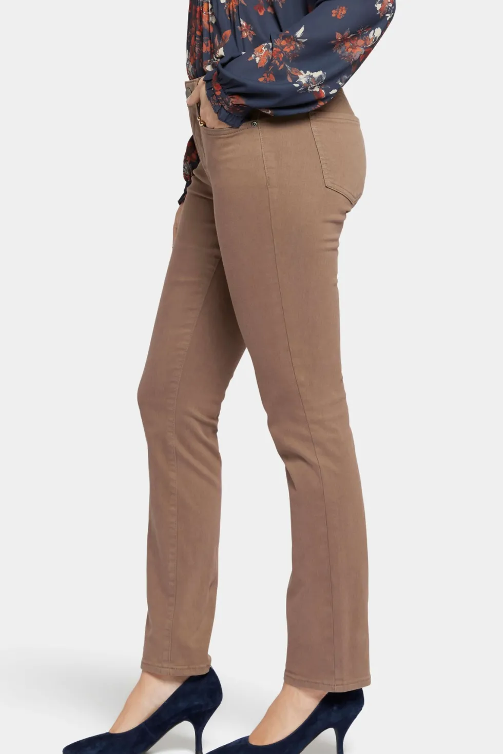 Discover the wonderful fit of NYDJ's Sheri Slim Jeans, a pair of jeans you'll enjoy every season. Our Lift Tuck® Technology uses a proprietary slimming panel with a patented criss-cross design to shape and support your curves. Features classic five-pocket styling and a zip fly with button closure.This jean is made wit
