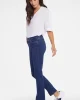 90% Cotton, 8% Elastomultiester, 2% Lycra® Elastane Made with Lift Tuck® Technology to flatten in the front and flatter curves in the back. Zip fly and button closure; five-pocket styling Machine wash cold and line dry. The easy, figure-elongating construction of the NYDJ Marilyn Straight Jeans pairswell with everyth