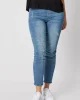 Pull On Ripped Jeans – TH35371 by Threadz at The Wardrobe Also available in Black Fitted through the leg Ankle grazer style on most Super stretch for all day fit and comfort Elastic waist for easy pull on fit Distressed finish Contrast stitching on pockets and seams Fabric backed distressed areas for comfort 4 Pocket