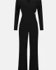 Supernatural Wide Leg Jumpsuit 253046 by Joseph Ribkoff at The Wardrobe. Boasting a sleek design and contemporary charm, this silky knit jumpsuit is a statement of refined style. The wide-leg silhouette flows gracefully, complemented by a wrapped V-neckline and long sleeves for an effortlessly polished look. Button det