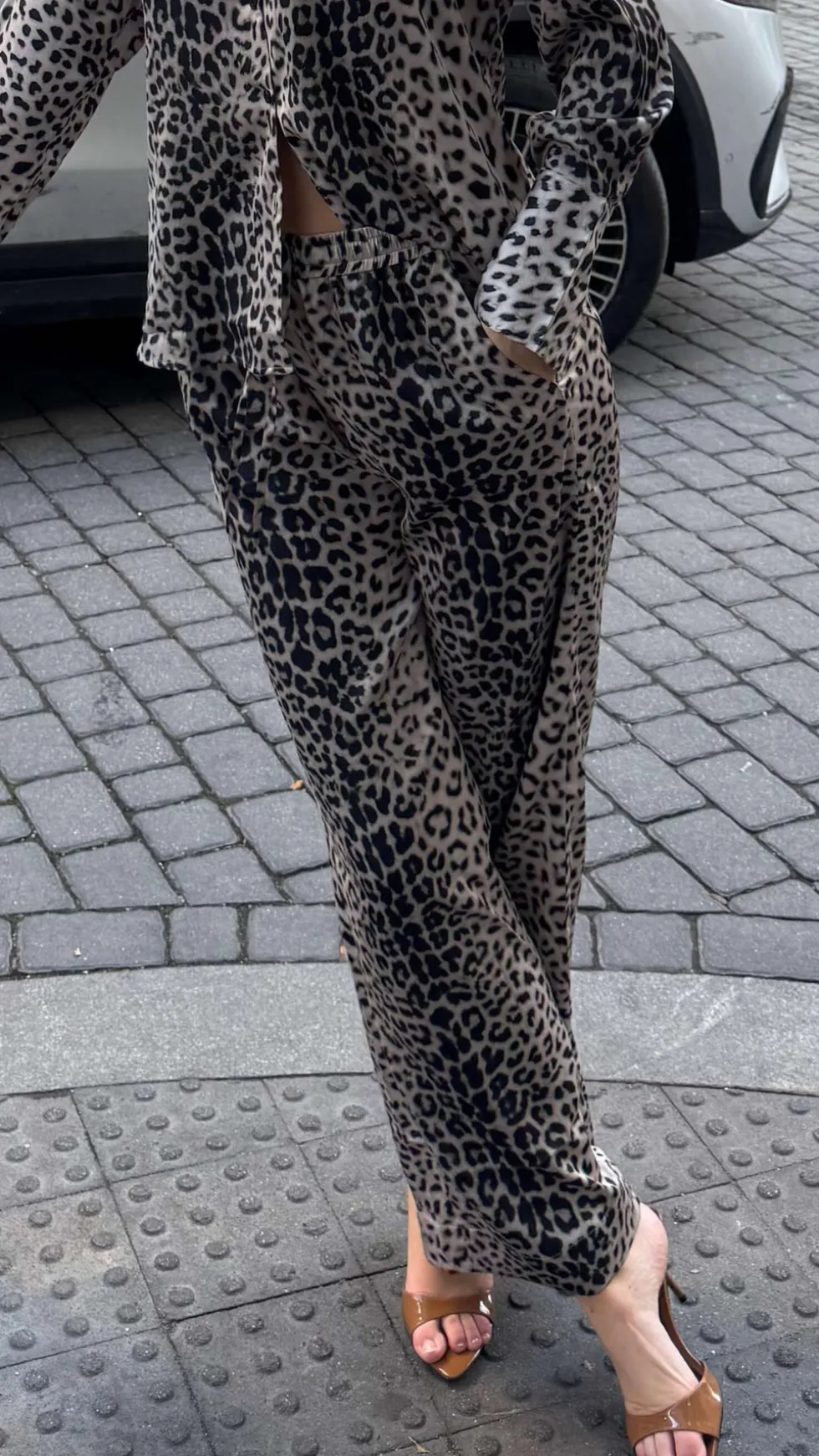 Lou Pants – Nude Leopard by Karmamia at The Wardrobe Super cool track pants with straight legs. Wash care:Machine washable 30 degreesMaterial:62 % satin-woven recycled polyester, 38 % high-grade polyester (eco-friendly)