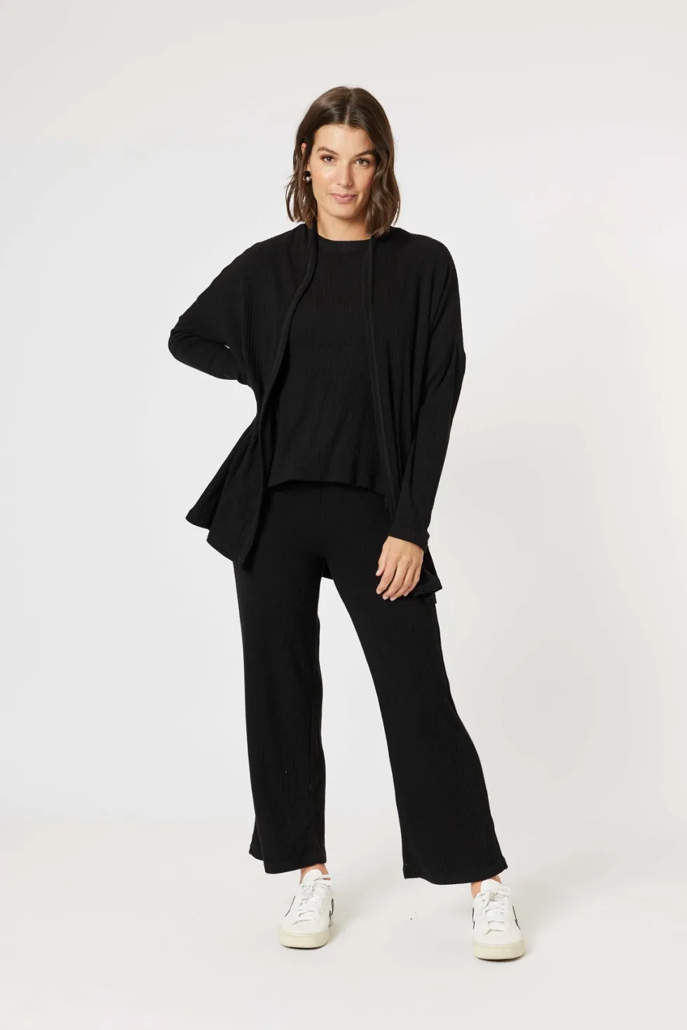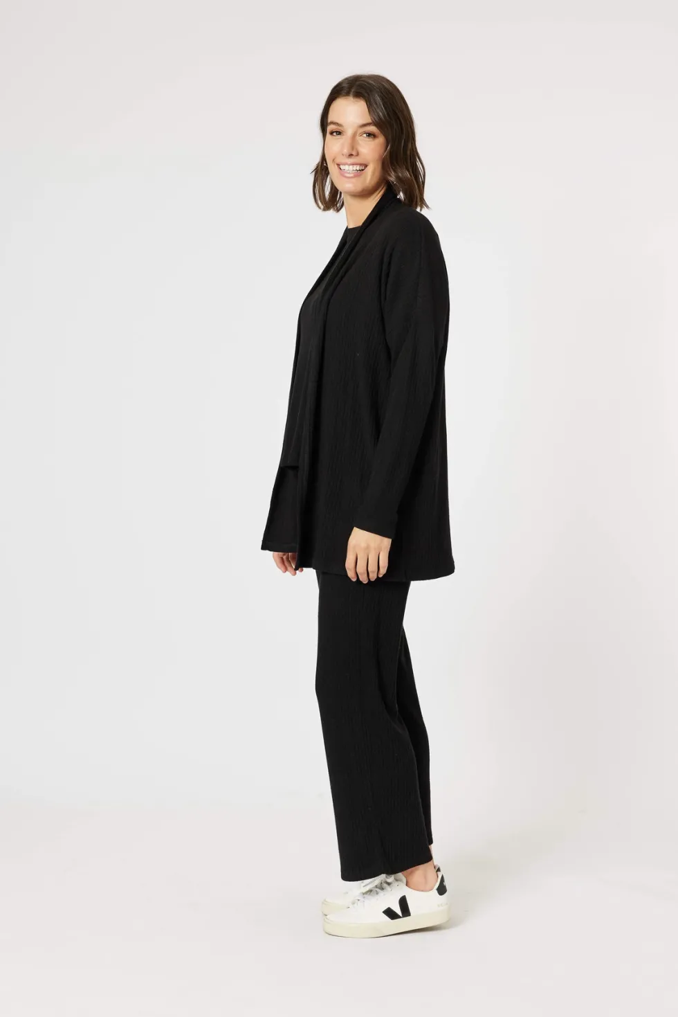 Ribbed Lounge Cardigan – Black 46978 Clarity at The Wardrobe Wrap yourself in luxurious comfort with our Ribbed Lounge Cardigan. This soft and stylish cardigan is the perfect addition to your loungewear collection. With its ribbed texture, it offers a cosy fit that is sure to make you feel relaxed and at ease. Pair it