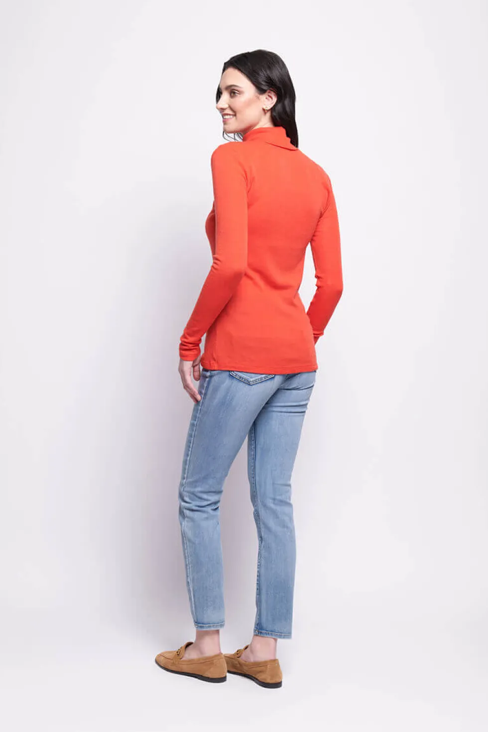 Fine Merino Polo Neck Top -Neon Flash Orange FO4171 by Foil At The Wardrobe. 100% Merino Wool Gentle Cool Machine Wash