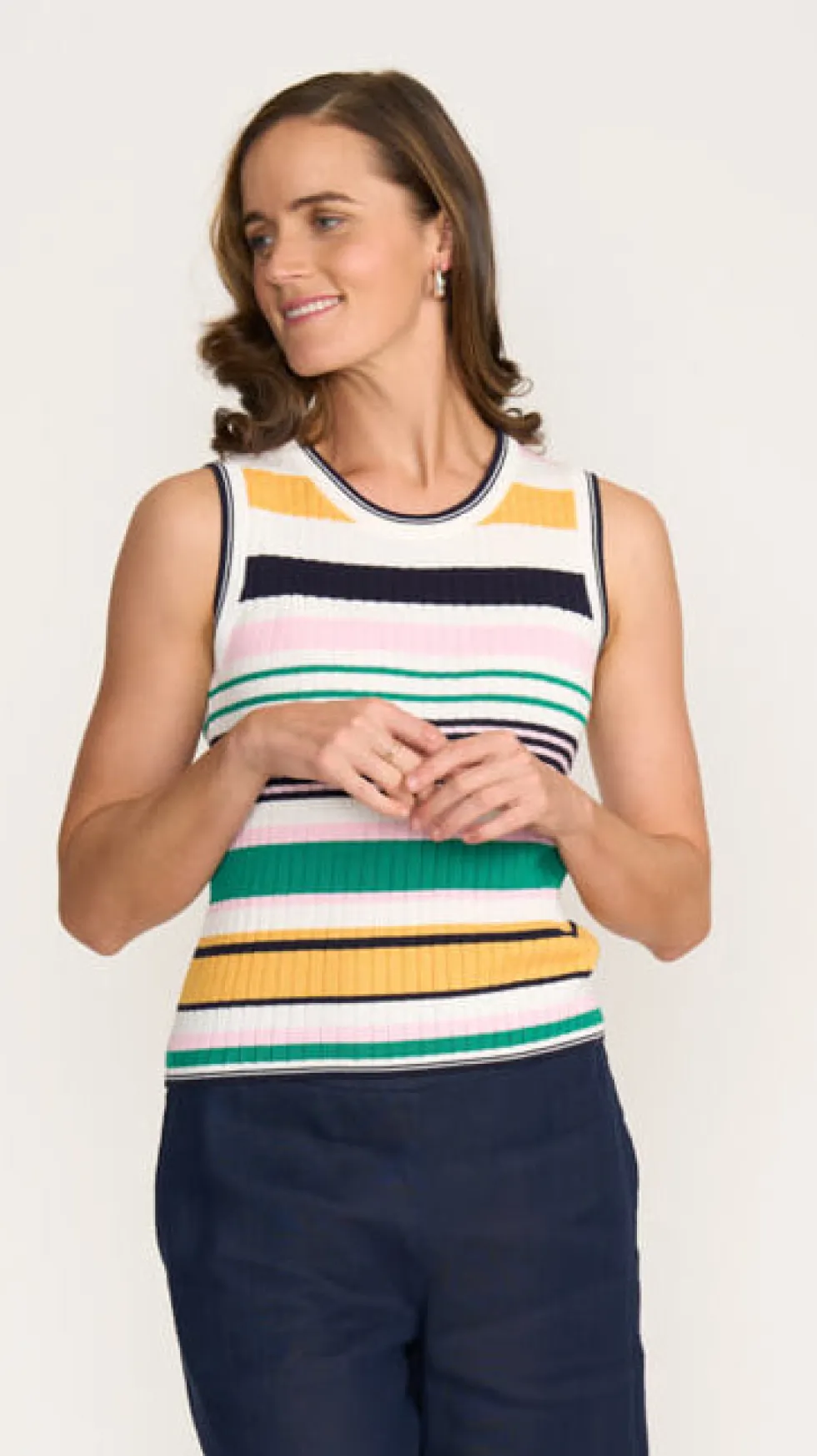Well Aligned Tank – Multi Stripe FO8225 by Foil at The Wardrobe 100% Cotton Cold hand wash or gentle machine wash separately using mild soapDo not soak or bleach cold rinseDo not twist or wring squeeze gently and reshape do not leave wetDry flat in shadeDo not tumble dryCool iron on reverseDo not dry cleanDo not hang: