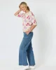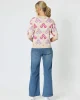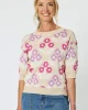 45168 – Nikki Floral Knit by Gordon Smith at The Wardrobe Features: Cotton/Modal Ribbed finish on the neck, sleeve & hems Contrast hem Stretch finish Intarsia fully fashioned knit Fit Guide: 3/4 Sleeve Round neck Fitted style