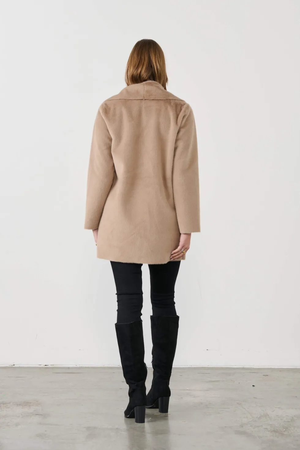 Lightweight Faux Fur Coat – Fawn by Holmes & Fallon available at The Wardrobe 100% Polyester