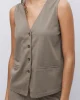 Khaki Cotton Knit Vest 42220 by Yerse at The Wardrobe. Flat-knit vest.100% cottonfabric. Straight cut. V-neck. Sleeveless. Tortoiseshell-effect button fastening. Trim pockets. Composition: 100% cotton. Model is 175 cm tall wearing size S. MATERIALS: Cottongarments are soft, breathable, absorbent and hypoallerge