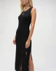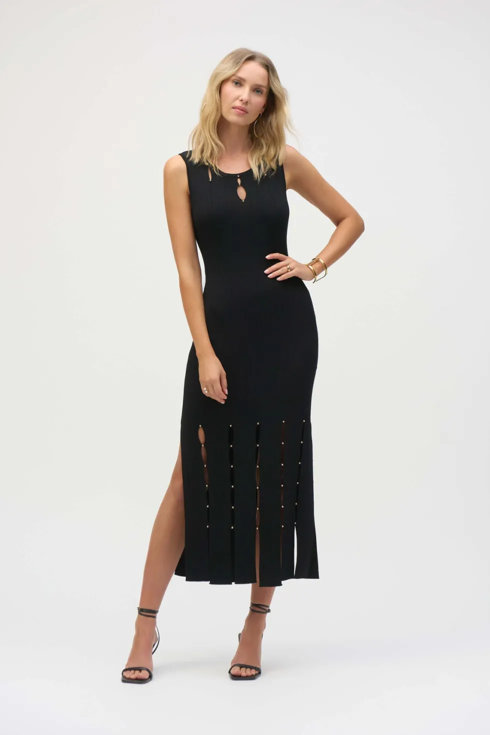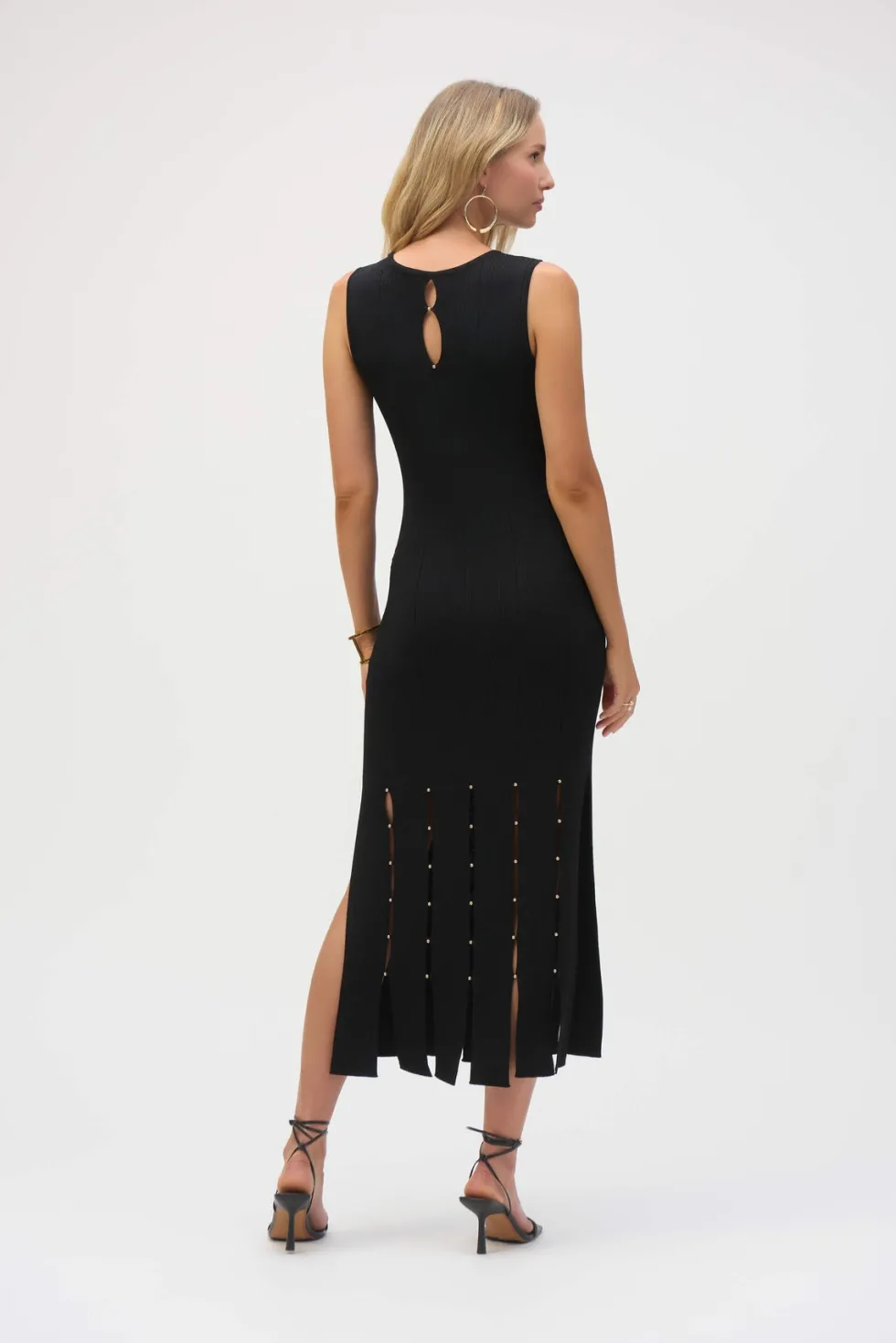 Endless Summer Sweater Knit Midi Dress with Car Wash Hem 252925 by Joseph Ribkoff at The Wardrobe Express your unique style in this sweater knit sleeveless dress adorned in gold beading. Whether you're sauntering across the room or dancing the night away, the swish of the car wash hem will keep you in motion and all