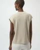 Sweater Sleeveless Knit – Birch 254935 by Joseph Ribkoff at The Wardrobe. This versatile sleeveless pullover is a chic addition to your occasion wardrobe, featuring a sophisticated mock neck and elegant iron-on detailing. Crafted from a soft sweater knit in a flattering straight fit, it pairs beautifully with a variety