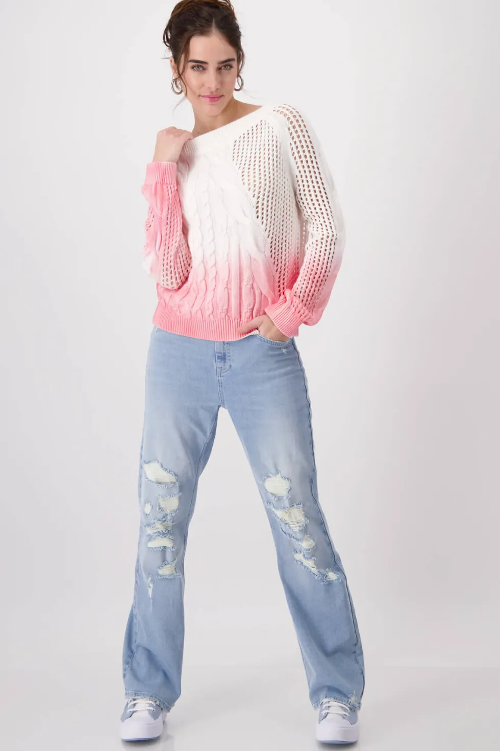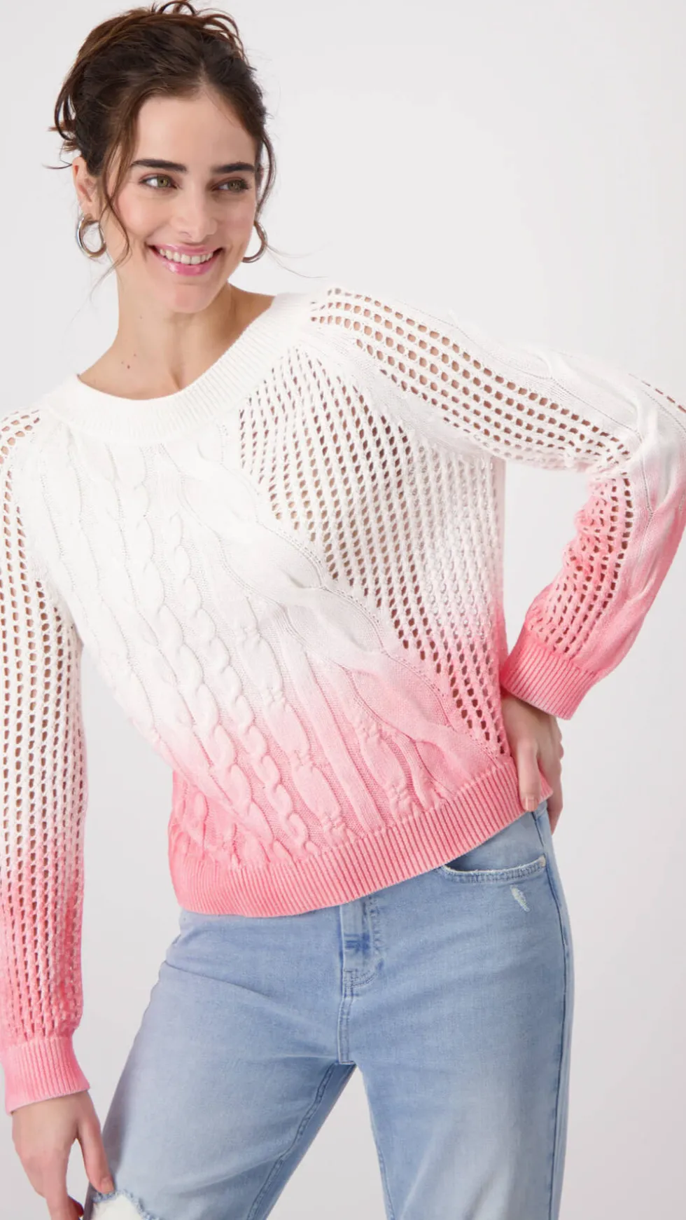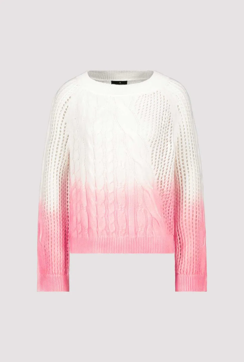 Round Neck Pullover 408440 by Monari at The Wardrobe. 100% Cotton The cotton jumper impresses thanks to its modern colour gradient and amour structure with cable stitch.