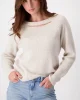 Stone Cut Out Sweater 807536 by Monari at The Wardrobe 43% Cotton 43% Acrylic 14% Metalized Polyester A high-quality cotton blend knit, with a shiny lurex effect and trendy cut out round neck. Gentle machine wash /Wool detergent/Wash inside out