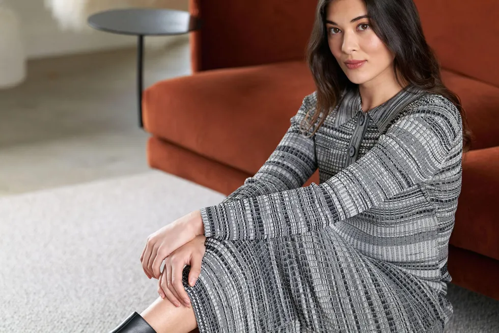 Space Jam Pencil Skirt – Grey 7726 by Foil available at The Wardrobe 65% Viscose 35% Nylon