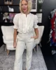 Heather Shirt 3603 Lania The Label at The Wardrobe Embrace elegance with the Heather Shirt, crafted from light cotton with a button-through design. Its ruffle neckline detail and dyed-to-match cotton lace trim exude femininity. Enhanced with delicate pintuck detailing on the front, back, and sleeve cuffs. 100% Cotton H