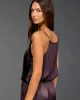 60%VISCOSE/ 40%SILK Crop top with thin straps. In silk velvet on the front and viscose on the back. Thin adjustable straps.