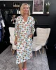 A-line midi dress with a V-neckline and 3/4 sleeves that can be rouched and tied, with stitched down side pockets and side splits. 55% Linen, 45% Rayon Gentle cold machine wash with like colours, using mild detergent. Do not rub/soak//wring/bleach. Do not tumble dry. Dry away from direct sunlight. Warm iron if desired.