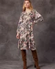 Legacy Dress – Blue Multi LS2629 by Loobies Story at The Wardrobe Midi dress in luxe sateen, with a V-neckline, and hidden in-seam pockets with elasticated cuffs 50% Viscose 50% Rayon Cool hand wash using mild detergent. Do not machine wash. Do not rub/soak/wring/bleach. Do not tumble dry. Dry away from direct sunligh