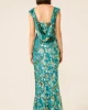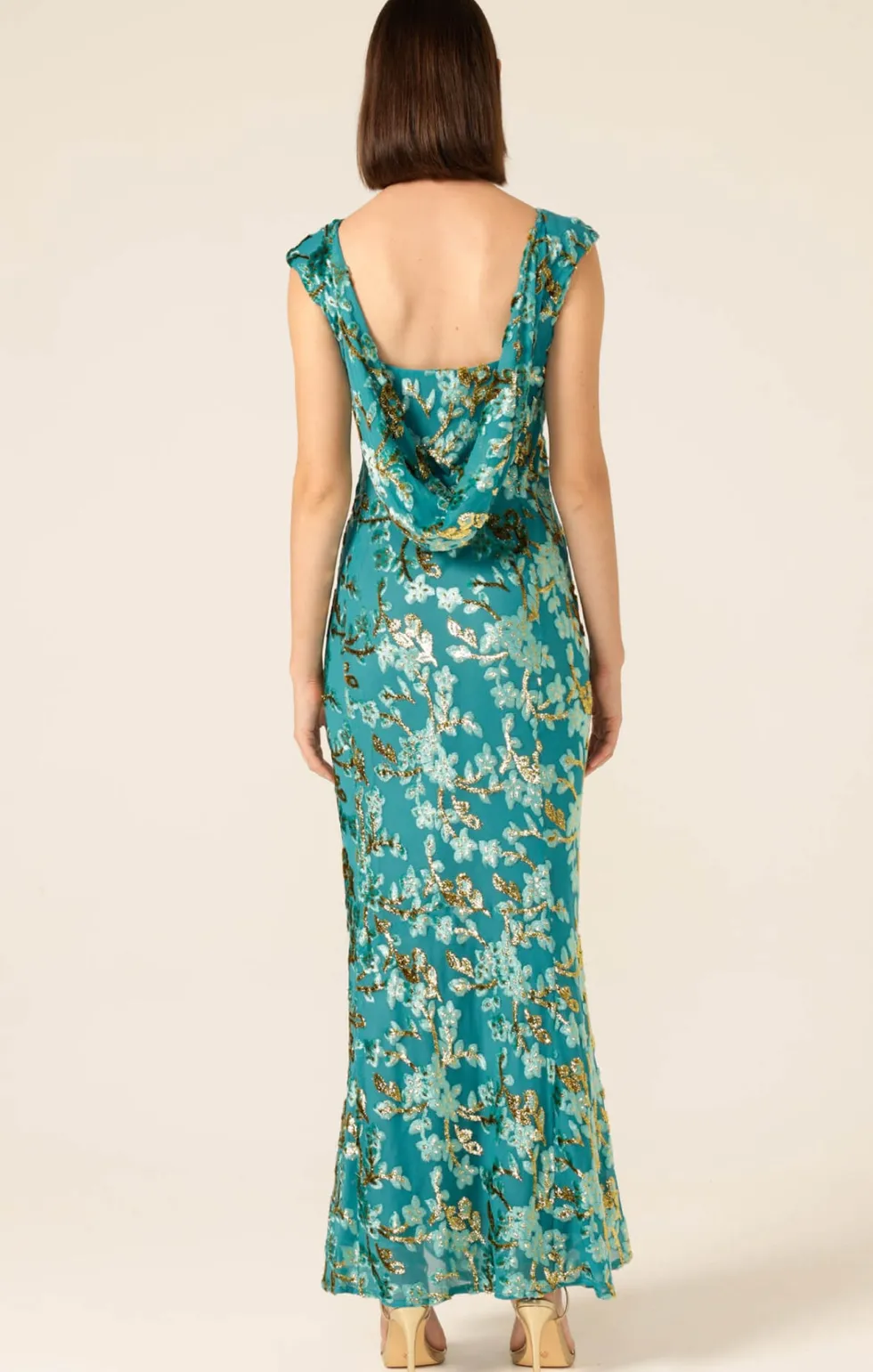 Heavenly Heights Maxi Dress by Sacha Drake at The Wardrobe. The Heavenly Heights Maxi Dress is simply elegant, crafted from a lightweight textured fabric with raised detailing and a satin lining. Featuring a sophisticated boat-neck front, a dramatic cowl back, and a fishtail hem, this Australian-designed bias-cut dres