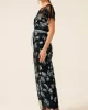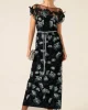 Love Potion Maxi Dress – Black Aqua Teal by Sacha Drake at The Wardrobe. Turn heads at weddings and events with the Love Potion Maxi Dress, made from an exquisite embroidered floral mesh. Featuring adjustable beaded cap sleeves, a braided belt, and adjustable slip, this boat-neck maxi exudes romance and elegance. • Out
