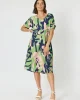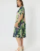 Top 45856 Clarity at The Wardrobe GENEROUS LABEL WE RECOMMEND GOING DOWN A SIZ The Como dress is a stunning V-neck empire waisted style With side pockets of course! Cap sleeve for top arm coverage And a length that hits just below the knee on most This is a printed textured viscose fabric which means it is beautiful