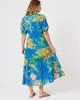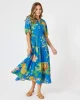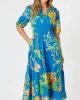 Tropics Dress – Blue/Multi – 48126 by Threadz at The Wardrobe Step into vibrant summer style with The Tropics Dress, designed in a striking blue base adorned with bold tropical blooms and lush greenery. Playful yet elegant, this dress captures the joy of sunshine-filled days and breezy escapes. Crafted from a lightweig