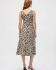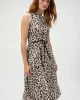 Savannah Poplin Animal Print Fit and Flare Dress 252095 by Joseph Ribkoff at The Wardrobe. This stretch poplin dress is designed to turn heads and showcase your impeccable style. The striking animal print meets a flattering fit and flare silhouette, lending a sophisticated feel to the garment. The front sash, trimmed i