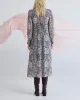 Valentina Dress 3771 by Lania The Label at The Wardrobe 63% Viscose, 37% Rayon Embrace effortless elegance with the Valentina Dress, a midi-length silhouette in theValentina print on a viscose rayon blend fabric. Scallop edge embroidery adds charm to the neckline, adorned with delicate antique brass buttons. Floaty sle