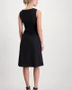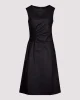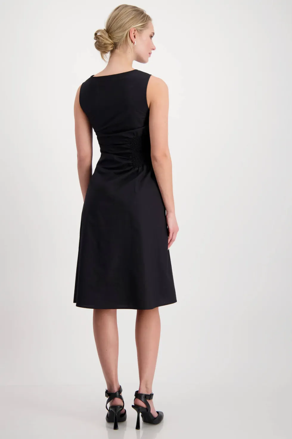 Side Gather Midi Dress by Monari at The Wardrobe The 100% cotton dress is knee-length and has a wide lateral gathering at the waist for a feminine outline (fit).