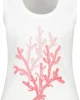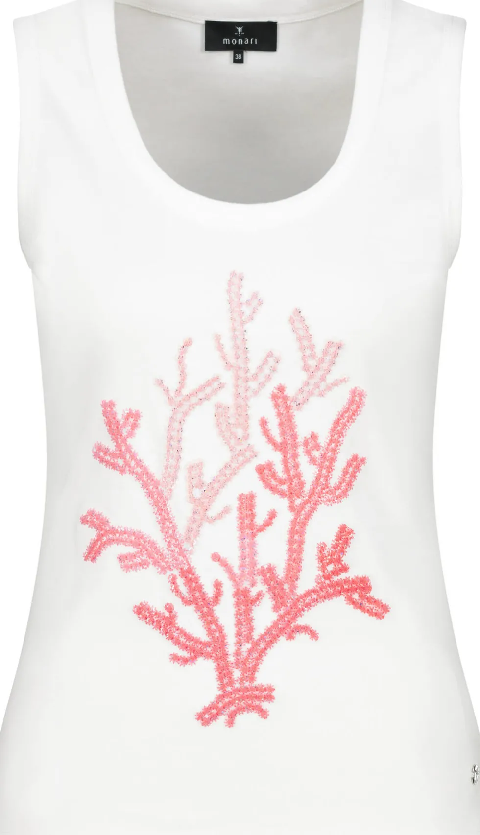 Round Neck Coral Rib Tank – Cream/Pink 409639 by Monari at The Wardrobe 100% Cotton 30°C very mild fine wash, Do not bleach, Do not tumble dry, Iron at low temperature, Do not dry-clean