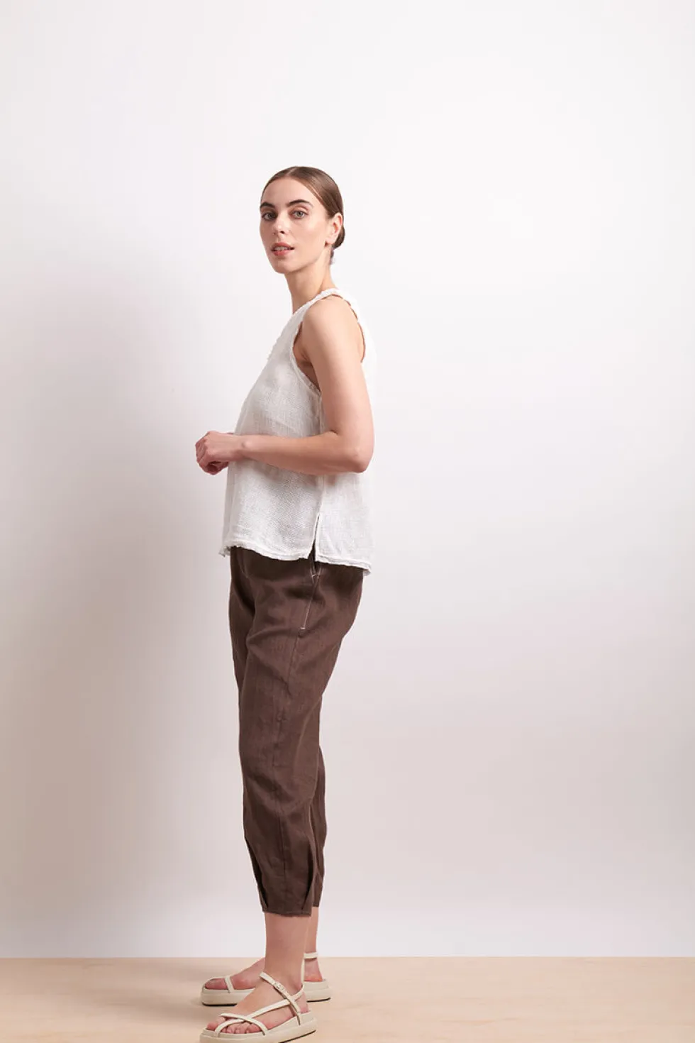 Mesh Tank – Vanilla 2827 by Neris at The Wardrobe An elevated basic with a textured twist, the 100% linen Mesh Tank is a relaxed fit that finishes at hip-length, this incredibly cool style is finished with raw, frayed edges for a cool, lived-in feel that layers beautifully. The top can be worn both ways, with a high or