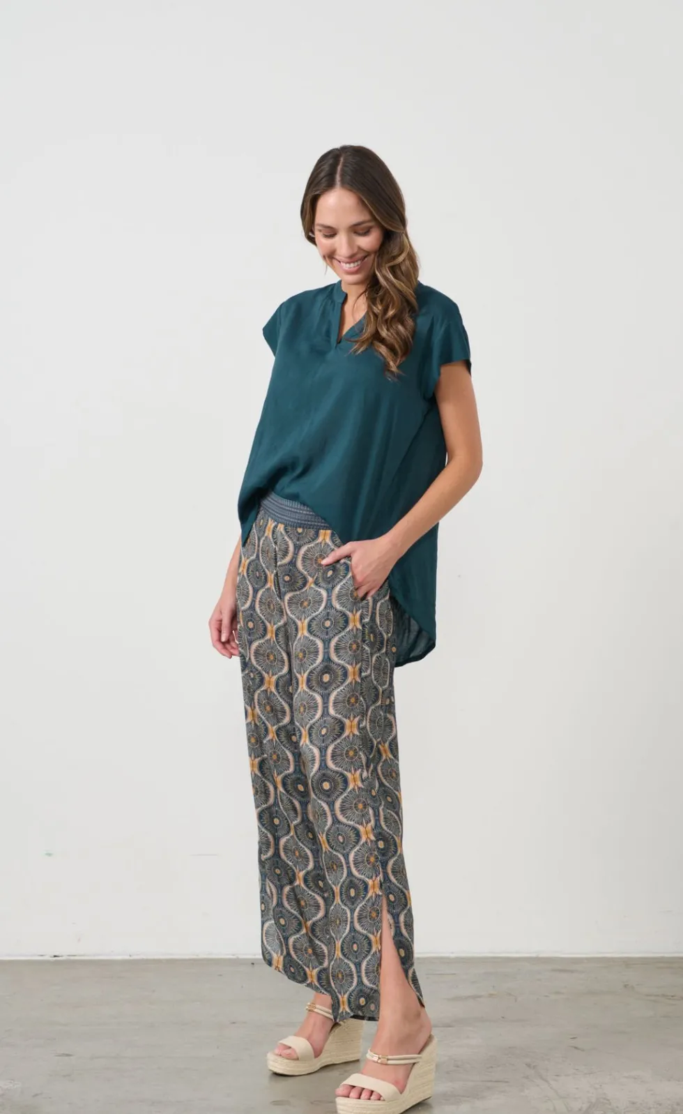 Soft and floaty fabric Side pockets Flat front waistband with elastic at back Special scoop hem design Hem with side splits Pull-on style No zipper Designed in Australia 100% Viscose Modal