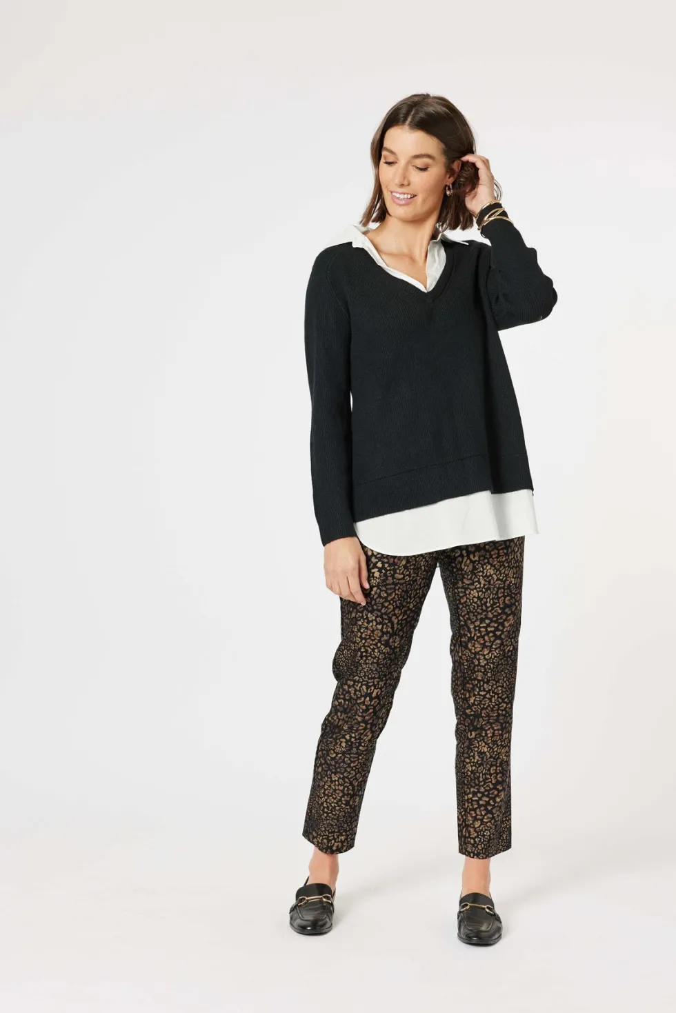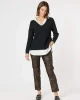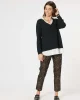 Mona Pant 46928 by Clarity at The Wardrobe. Experience the best of both worlds with this hybrid piece that combines the warmth of a coat and the comfort of a cardigan. With its unique stitch detailing and practical patch pocket, this stylish piece is sure to be a staple in your wardrobe. The single button closure and