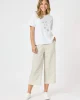 Lino Wide Leg Pant – Natural by Gordon Smith at The Wardrobe Features: The Lino Pant is an ankle-length, wide-leg style crafted from a soft linen blend – perfect for warm days and effortless dressing. Designed with a flat front waistband and belt loops for a clean, tailored look, it also features an elasticated back fo