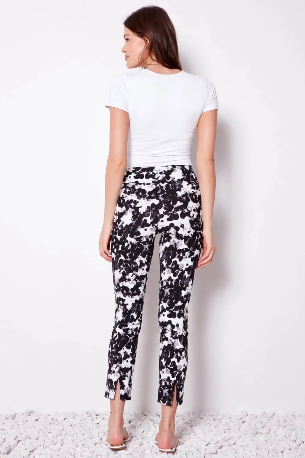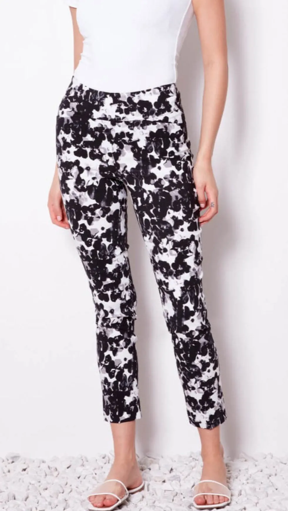 Botanic Black Techno Ankle Pant – Black 68444 by Up Pants! at The Wardrobe A swanky statement piece with a timeless cut, the Botanic pant delivers deep floral vibes with a polished, elegant edge. The tailored aesthetic balances out the statement print, rendered in tonal hues that transition from day to night with versa